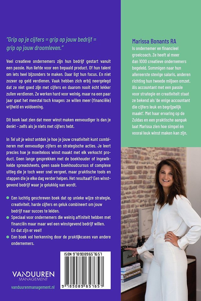 Marissa Bonants RA is ondernemer en financieel groeicoach. Ze heeft al meer dan 1000 creatieve ondernemers begeleid. Sommigen naar hun allereerste stevige salaris, anderen richting hun tweede miljoen omzet. Als accountant met een passie voor strategie en creativiteit staat ze bekend als 'de enige accountant die cijfers leuk en begrijpelijk maakt'.