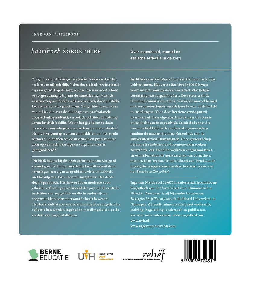 Dit boek begint bij de eigen ervaringen van wat goed en niet goed is. In het tweede deel wordt vanuit deze ervaringen een eigen zorgethische visie ontwikkeld met behulp van Joan Tronto's zorgethiek. Het derde deel is praktisch. Hierin wordt een methode voor ethische reflectie gepresenteerd die past bij de centrale inzichten van zorgethiek en die in onderwijs en zorgpraktijken haar meerwaarde heeft bewezen. Het boek sluit af met een beschrijving hoe zorgethische reflectie kan worden ingebed in instellingsbeleid en de context van zorginstellingen.