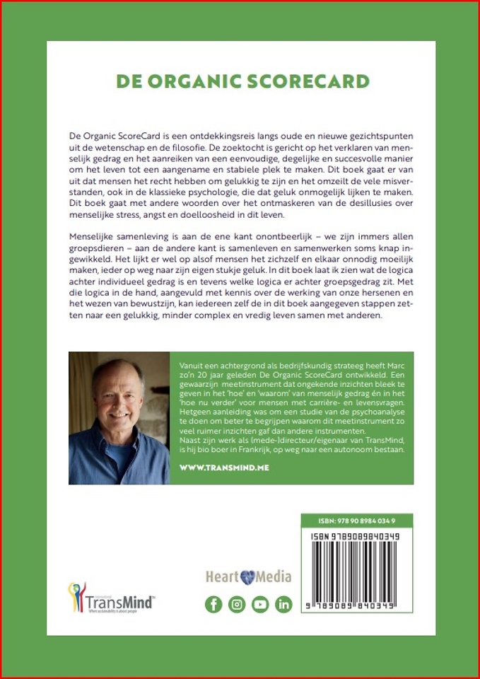 Vanuit een achtergrond als bedrijfskundig strateeg heeft Marc zo’n 20 jaar geleden De Organic ScoreCard ontwikkeld. Een gewaarzijn meetinstrument dat ongekende inzichten bleek te geven in het ‘hoe' en ‘waarom’ van menselijk gedrag en in het ‘hoe nu verder’ voor mensen met carrière- en levensvragen.