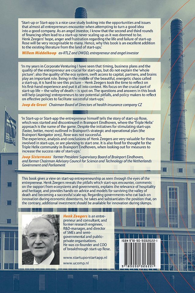 This book gives a view on start-up entrepreneurship as seen through the eyes of the entrepreneur. Henk Zeegers reveals the pitfalls which start-ups encounter, comments on the support from ecosystems and governments, explains the relevance of hospitality and heritage, and provides hands-on advice and models for surviving the valley of death and becoming a successful scale-up. Regarding governments who cut back on innovation during economic downturns, he takes and substantiates the position that, on the contrary, additional investment should be available for innovation during slumps.