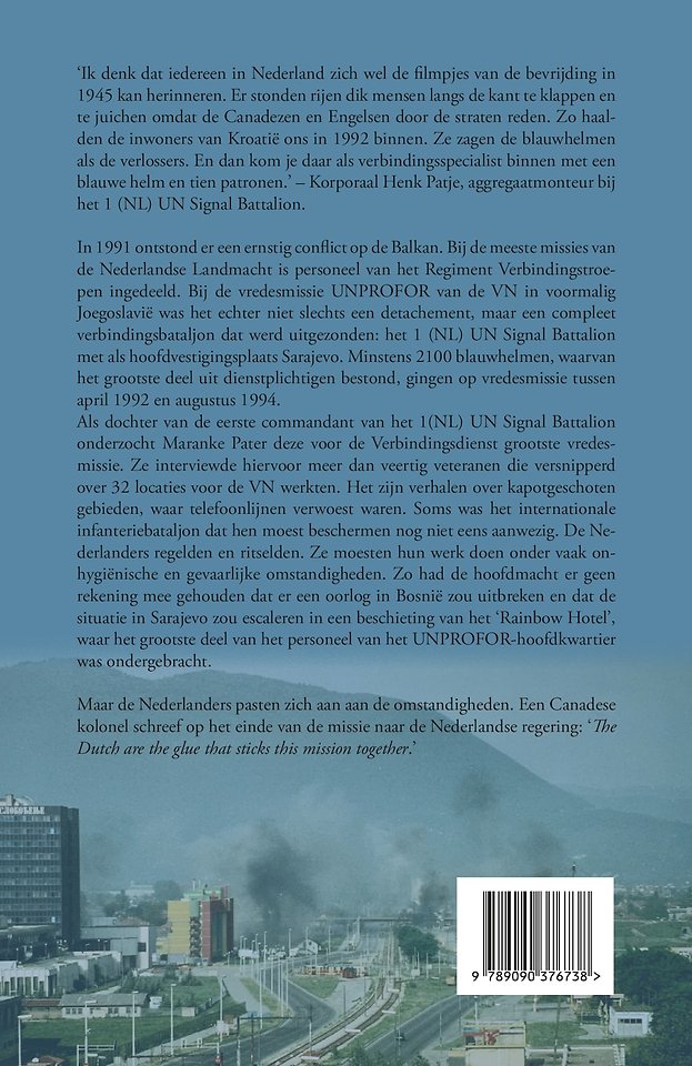 Als dochter van de eerste commandant van het 1(NL) UN Signal Battalion onderzocht ik, Maranke Pater, deze voor de Verbindingsdienst grootste vredesmissie. Ik interviewde hiervoor meer dan veertig veteranen die versnipperd over 32 locaties voor de VN werkten. Het zijn verhalen over kapotgeschoten gebieden, waar telefoonlijnen verwoest waren. Soms was het internationale infanteriebataljon dat de verbindelaren moest beschermen nog niet eens aanwezig.