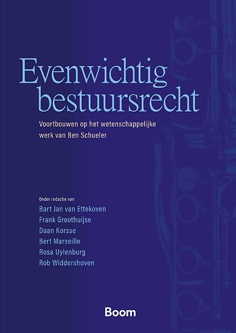 Zevenentwintig collega’s van Ben Schueler leveren in Evenwichtig bestuursrecht een wetenschappelijke bijdrage op de uiteenlopende terreinen van het bestuursrecht waarbinnen Ben actief was. Er is gekozen voor vier thema’s: bestuurlijk handelen van bestuursorganen, rechtsbescherming, het rechtsterrein van het omgevingsrecht en overheidsaansprakelijkheid.