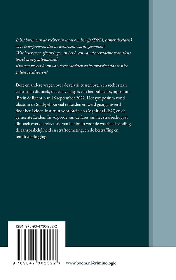 Deze en andere vragen over de relatie tussen brein en recht staan centraal in dit boek, dat een verslag is van het publiekssymposium ‘Brein & Recht’, op 16 september 2022 georganiseerd door het Leiden Instituut voor Brein en Cognitie (LIBC) en de gemeente Leiden. In volgorde van de fases van het strafrecht gaat dit boek over de relevantie van het brein voor de waarheidsvinding, de aansprakelijkheid en straftoemeting, en de bestraffing en tenuitvoerlegging.