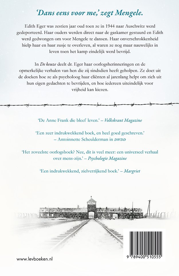 Edith Eva Eger was zestien jaar oud toen ze in 1944 naar Auschwitz werd gedeporteerd. Haar ouders werden direct naar de gaskamer gestuurd en Edith werd gedwongen om voor Mengele te dansen. Haar onverschrokkenheid hielp haar en haar zusje te overleven, al waren ze nog maar nauwelijks in leven toen het kamp eindelijk werd bevrijd.