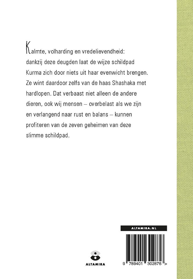 Wijsheid, kalmte, geborgenheid: dankzij deze deugden laat de wijze schildpad Kurma zich door niets uit haar evenwicht brengen. Ze wint daardoor met hardlopen zelfs van Shashaka, de haas! Dat verbaast niet alleen de andere dieren... Ook wij mensen, overbelast als we zijn en verlangend naar rust en harmonie, kunnen profiteren van de zeven geheimen van deze slimme schildpad.