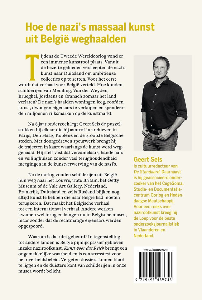 Na 8 jaar onderzoek legt Geert Sels de puzzelstukken bij elkaar die hij aantrof in archieven in Parijs, Den Haag, Koblenz en overal in België. Verzamelaars, handelaars en veilinghuizen gingen zonder veel reserves mee in de kunstverwerving van de nazi's.