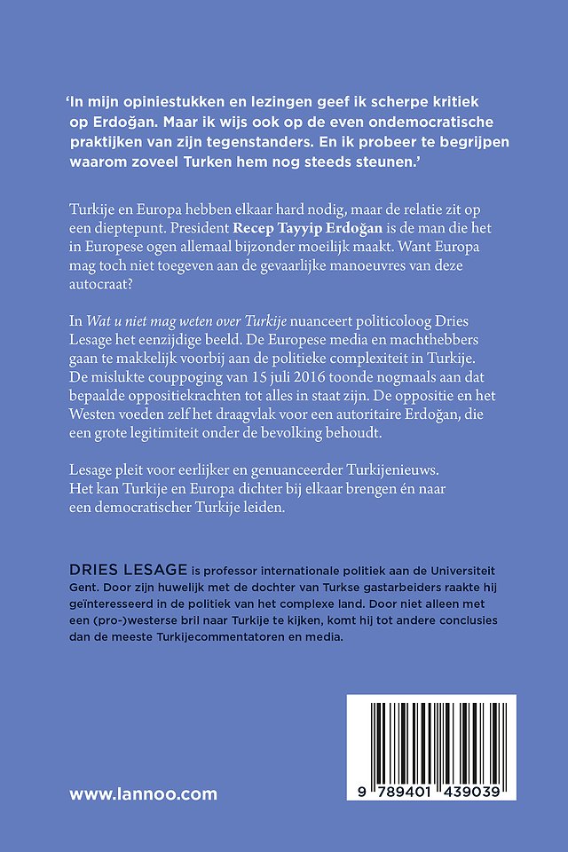 Controversieel boek over het belang van een genuanceerde kijk op Turkije Of het nu gaat om vluchtelingen, terrorisme of economie: Turkije en Europa hebben elkaar hard nodig. Maar de relatie loopt stroef. Volgens dit boek is dat niet alleen de schuld van president Erdogan, die met 52 procent van de stemmen rechtstreeks werd verkozen. Hem kan wel verweten worden het ondemocratische spel van de Ataturkgezinde oppositie, de terreurbeweging PKK en het schimmige Gulennetwerk met brio mee te spelen.