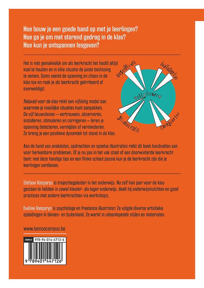 Relaxed voor de klas reikt een vijfdelig model aan waarmee je moeilijke situaties kunt aanpakken. De vijf bouwstenen - vertrouwen, observeren, installeren, stimuleren en corrigeren - leren je spanning detecteren, vermijden of verminderen. Zo breng je een positieve dynamiek tot stand in de klas.