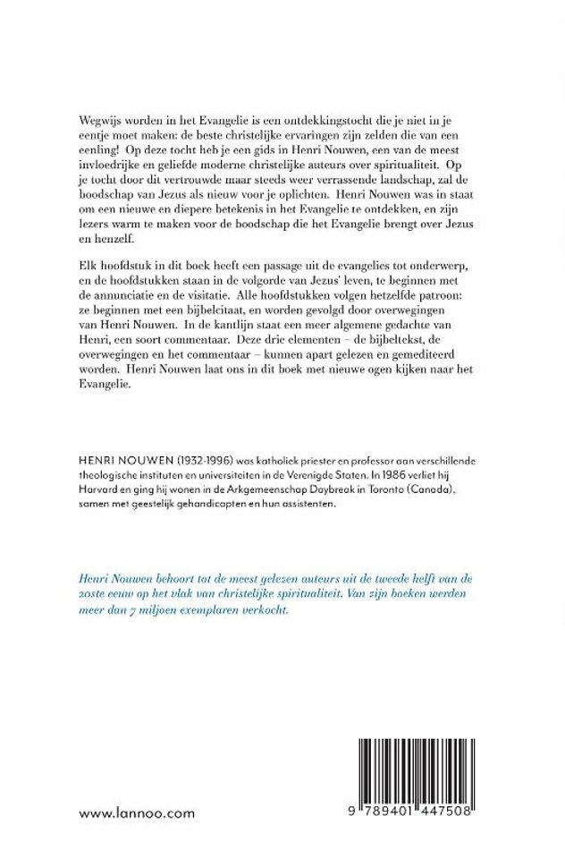 Wegwijs worden in het Evangelie is een ontdekkingstocht die je niet in je eentje moet maken: de beste christelijke ervaringen zijn zelden die van een eenling! Op deze tocht heb je een gids in Henri Nouwen, een van de meest invloedrijke en geliefde moderne christelijke auteurs over spiritualiteit.