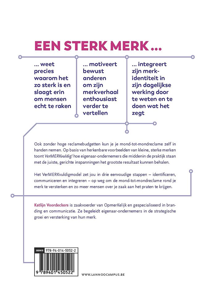 VerMERKvuldig! zet jouw merk op weg naar meer en betere mond-tot-mondreclame. Via het model in dit boek leer je in drie eenvoudige stappen - identificeren, communiceren en integreren - je merk versterken en krijg je meer mensen over je zaak aan het praten.