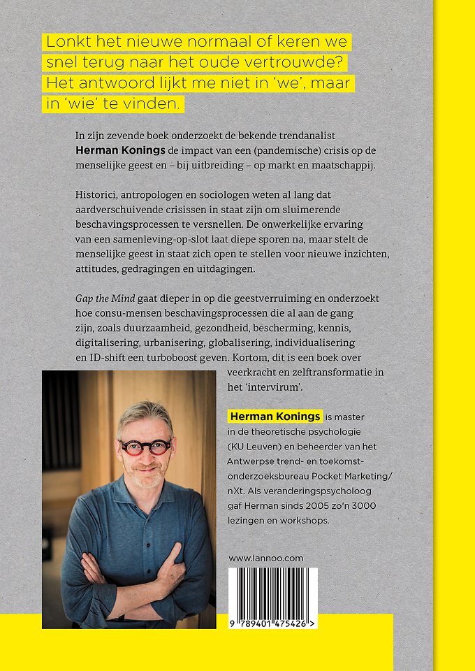 In zijn zevende boek onderzoekt de bekende trendanalist Herman Konings de impact van een (pandemische) crisis op de menselijke geest en – bij uitbreiding - op markt en maatschappij.
