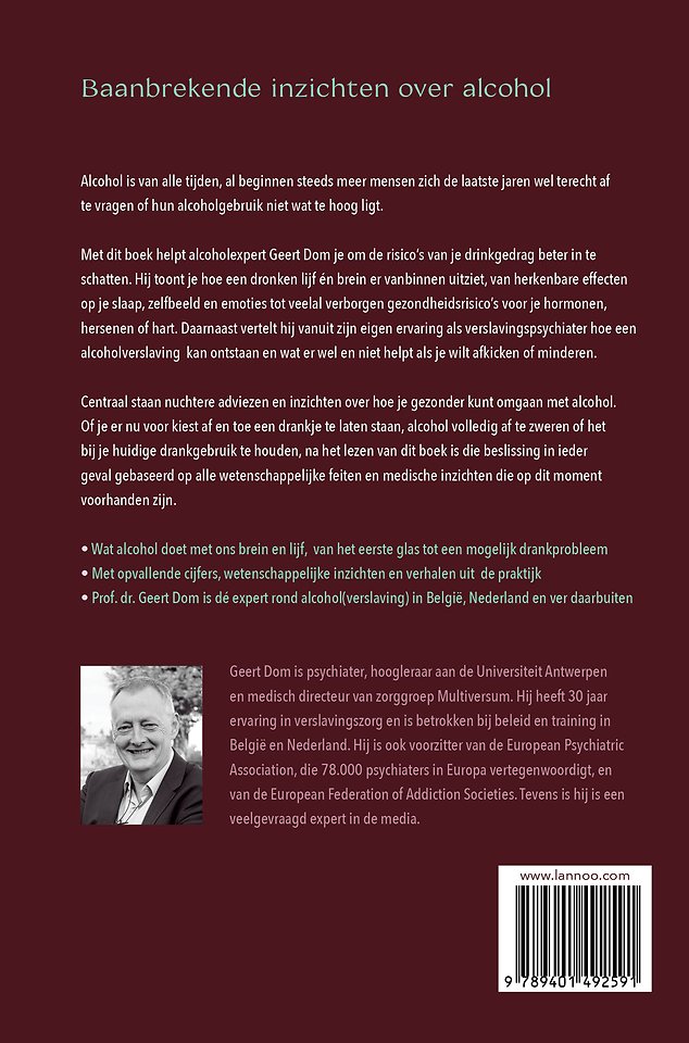 Met dit boek helpt alcoholexpert Geert Dom je om de risico's van je drinkgedrag beter in te schatten. Hij toont je hoe een dronken lijf én brein er vanbinnen uitziet, van herkenbare effecten op je slaap, zelfbeeld en emoties tot veelal verborgen gezondheidsrisico's voor je hormonen, hersenen of hart.