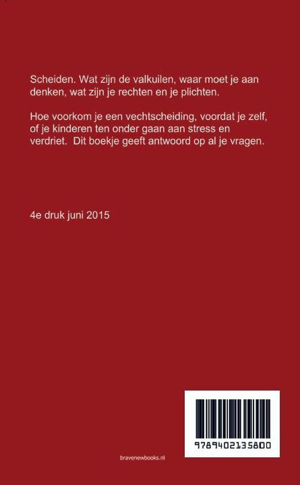 Hoe voorkom je een vechtscheiding, voordat je zelf, of je kinderen ten onder gaan aan stress en verdriet. Dit boekje geeft antwoord op al je vragen.