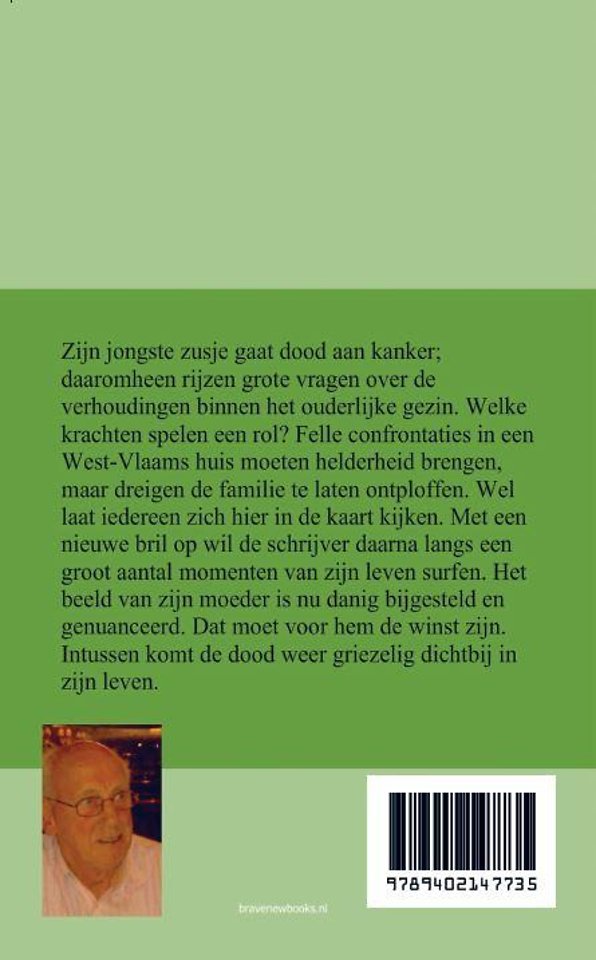Zijn jongste zusje gaat dood aan kanker; daaromheen rijzen grote vragen over de verhoudingen binnen het ouderlijke gezin. Welke krachten spelen een rol? Felle confrontaties in een West-Vlaams huis moeten helderheid brengen, maar dreigen de familie te laten ontploffen. Wel laat iedereen zich hier in de kaart kijken. Met een nieuwe bril op wil de schrijver daarna langs een groot aantal momenten van zijn leven surfen. Het beeld van zijn moeder is nu danig bijgesteld en genuanceerd. Dat moet voor hem de winst zijn. Intussen komt de dood weer griezelig dichtbij in zijn leven.