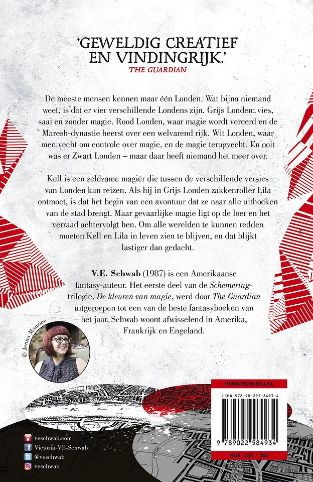 De meeste mensen kennen maar één Londen. Wat bijna niemand weet, is dat er vier verschillende Londens zijn. Grijs Londen: vies, saai en zonder magie. Rood Londen, waar magie wordt vereerd en de Maresh-dynastie heerst over een welvarend rijk. Wit Londen, waar men vecht om controle over de magie. En ooit was er Zwart Londen – maar daar heeft niemand het meer over.