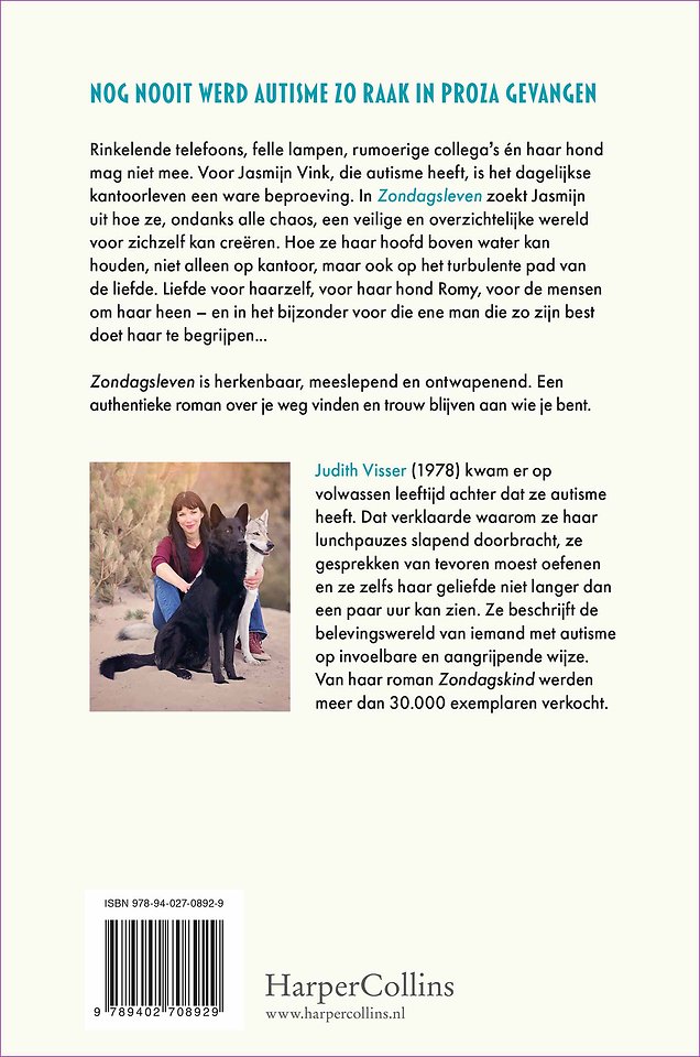 'In haar nieuwe autobiografische roman Zondagsleven vertelt Judith Visser op invoelbare en eerlijke wijze over leven met autisme.' - Trouw