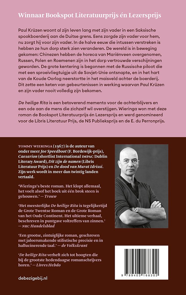 De heilige Rita is een betoverend memento voor de achterblijvers en een ode aan de mens die zichzelf wil overstijgen. Wieringa won met deze roman de Bookspot Literatuurprijs én Lezersprijs en werd genomineerd voor de Libris Literatuurprijs, de NS Publieksprijs en de E. du Perronprijs. Van het boek werden meer dan 150.000 exemplaren verkocht.