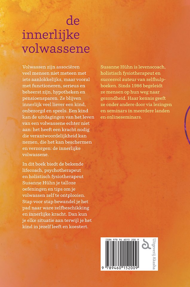 In dit boek biedt de bekende lifecoach, psychotherapeut en holistisch fysiotherapeut Susanne Hühn je talloze oefeningen en tips om je volwassen zelf te ontplooien. Stap voor stap bewandel je het pad naar ware zelfbeschikking en innerlijke kracht. Dan kun je elke situatie aan terwijl je het kind in jezelf leeft en koestert.