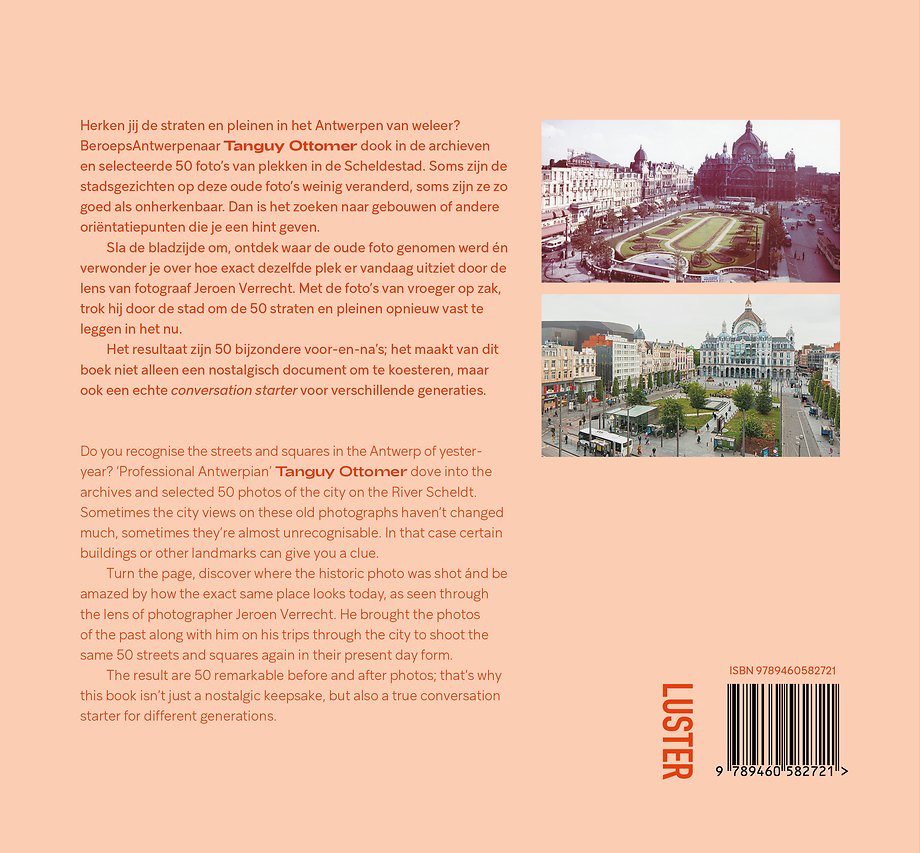 Herken jij de straten en pleinen in het Antwerpen van weleer? BeroepsAntwerpenaar Tanguy Ottomer dook in de archieven en selecteerde 50 foto’s van plekken in de Scheldestad. Soms zijn de stadsgezichten op deze oude foto’s weinig veranderd, soms zijn ze zo goed als onherkenbaar. Dan is het zoeken naar gebouwen of andere oriëntatiepunten die je een hint geven.Sla de bladzijde om, ontdek waar de oude foto genomen werd én verwonder je over hoe exact dezelfde plek er vandaag uitziet door de lens van fotograaf Jeroen Verrecht. Met de foto’s van vroeger op zak, trok hij door de stad om de 50 straten en pleinen opnieuw vast te leggen in het nu.Het resultaat zijn 50 bijzondere voor-en-na’s; het maakt van dit boek niet alleen een nostalgisch document om te koesteren, maar ook een echte conversation starter voor verschillende generaties.