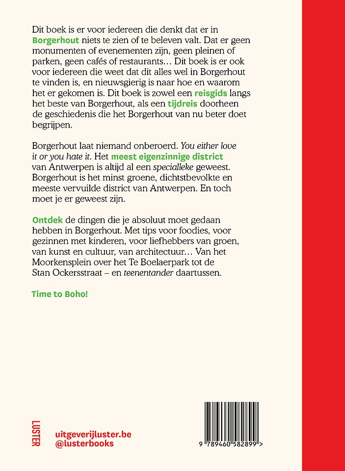 Dit boek is er voor iedereen die denkt dat er in Borgerhout niets te zien of te beleven valt. Dat er geen monumenten of evenementen zijn, geen pleinen of parken, geen cafés of restaurants... Dit boek is er ook voor iedereen die weet dat dit alles wel in Borgerhout te vinden is, en nieuwsgierig is naar hoe en waarom het er gekomen is. Dit boek is zowel een reisgids langs het beste van Borgerhout, als een tijdreis doorheen de geschiedenis die het Borgerhout van nu beter doet begrijpen.