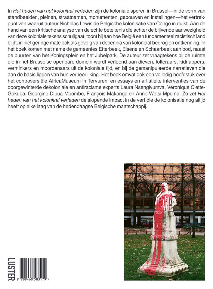 In 'Het heden van het koloniaal verleden' zijn de koloniale sporen in Brussel - in de vorm van standbeelden, pleinen, straatnamen, monumenten, gebouwen en instellingen - het vertrekpunt van waaruit auteur Nicholas Lewis de Belgische kolonisatie van Congo in duikt. Aan de hand van een kritische analyse van de echte betekenis die achter de blijvende aanwezigheid van deze koloniale tekens schuilgaat, toont hij aan hoe België een fundamenteel racistisch land blijft, in niet geringe mate ook als gevolg van decennia van koloniaal bedrog en ontkenning. In het boek komen met name de gemeentes Etterbeek, Elsene en Schaarbeek aan bod, naast de buurten van het Koningsplein en het Jubelpark. De auteur zet vraagtekens bij de ruimte die in het Brusselse openbare domein wordt verleend aan dieven, folteraars, kidnappers, verminkers en moordenaars uit de koloniale tijd, en bij de gemanipuleerde narratieven die aan de basis liggen van hun verheerlijking. Het boek omvat oak een volledig hoofdstuk over het controversiele AfricaMuseum in Tervuren, en essays en artistieke interventies van de doorgewinterde dekoloniale en antiracisme experts Laura Nsengiyumva, Veronique CletteGakuba, Georgine Dibua Mbombo, Frangois Makanga en Anne Wetsi Mpoma. Zo zet 'Het heden van het koloniaal verleden' de slopende impact in de verf die de kolonisatie nog altijd heeft op elke laag van de hedendaagse Belgische maatschappij.