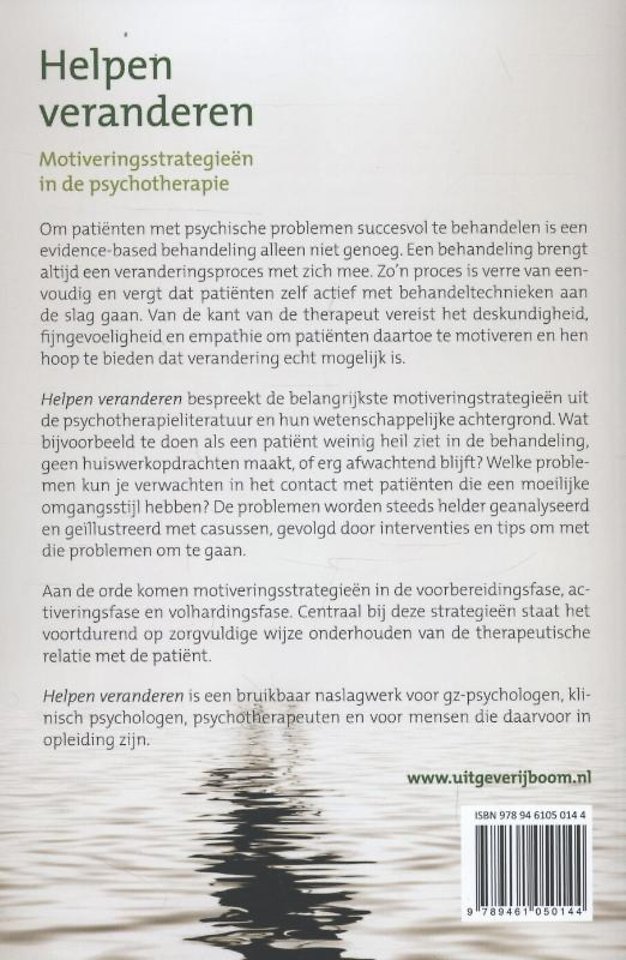 Dit boek biedt een helder overzicht van strategieën die therapeuten kunnen gebruiken om patiënten voor een psychologische behandeling te motiveren. Wat bijvoorbeeld te doen als een patiënt zijn huiswerkopdrachten niet maakt en herhaaldelijk niet komt opdagen? Hoe te handelen bij patiënten die een moeilijke omgangsstijl hebben?