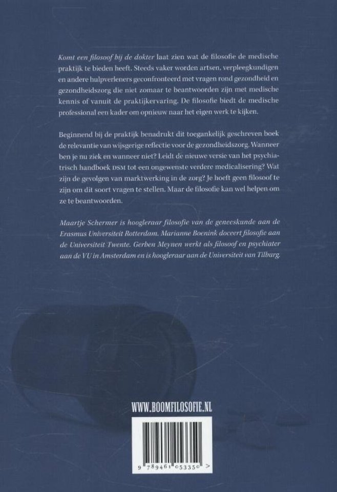 Wat heeft filosofie te maken met de gezondheidszorg? In Komt een filosoof bij de dokter laten verschillende experts zien dat de medische praktijk doortrokken is van wijsgerige kwesties. Diagnostiek, technologische vernieuwing en markwerking: de filosofie biedt de medische professional een kader om daarmee om te gaan. Steeds beginnend bij de praktijk toont dit boek de relevantie aan van wijsgerige reflectie voor de gezondheidszorg. Onmisbare lectuur voor studenten geneeskunde en hbo-v.