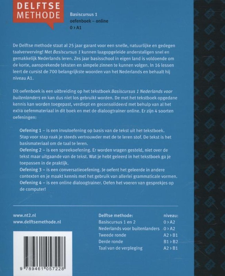Basiscursus 1 van de Delftse methode is herzien. De herziene editie van het Oefenboek heeft een nieuwe vormgeving. Het boek bevat oefeningen en opdrachten die aansluiten bij de teksten in het Tekstboek van Basiscursus 1. De oefeningen zijn vooral bedoeld om cursisten in de klas aan te moedigen tot conversatie in vraag- en antwoordvorm. Ook zijn er oefeningen om de schriftelijke vaardigheden te oefenen en uit te breiden.
