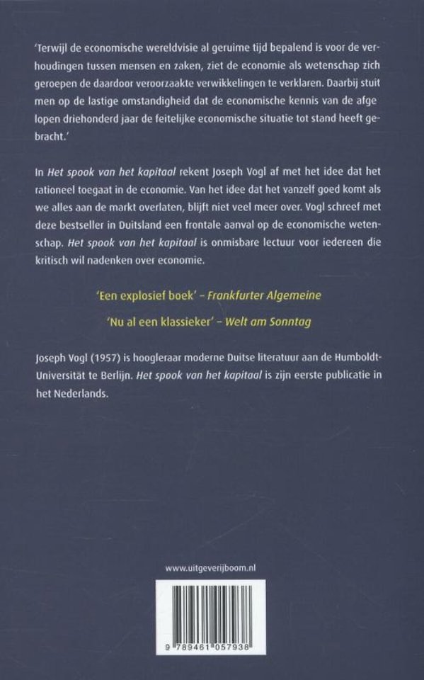 Joseph Vogl rekent in Het spook van het kapitaal af met het idee dat het rationeel toegaat op de beurs. Van het idee dat het vanzelf goed komt als we alles aan de markt overlaten, blijft niets meer over. Het spook van het kapitaal is daarmee een frontale aanval op de economische wetenschap. Dit scherp geschreven boek is onmisbare lectuur voor iedereen die kritisch wil nadenken over economie.
