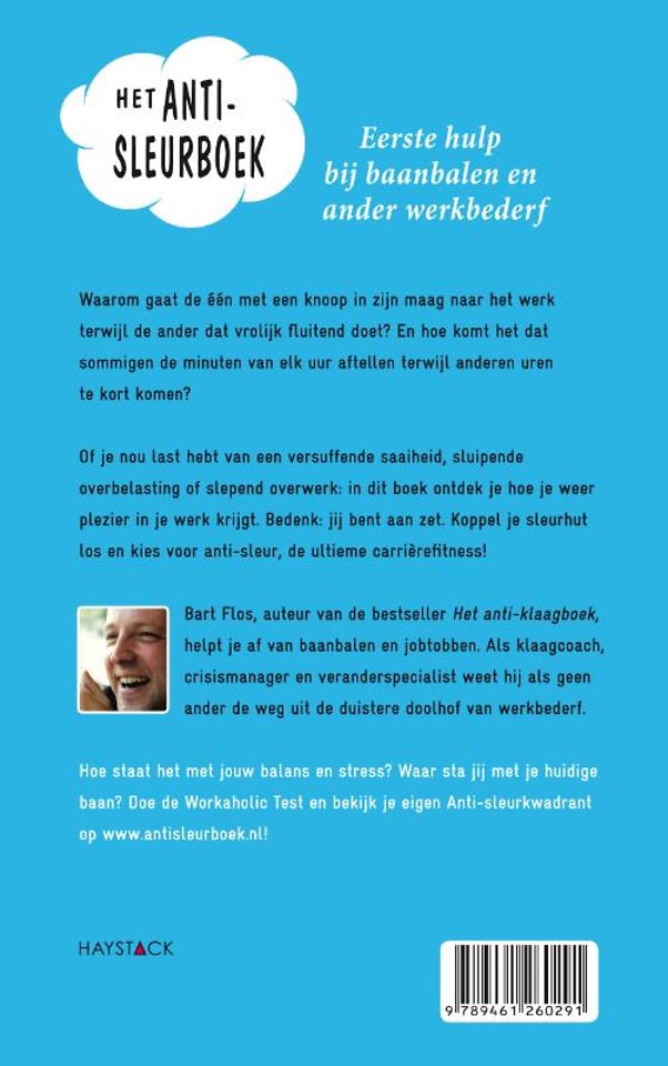 Bart Flos trekt ten strijde tegen de sleurstress Hans van der Klis 21 mei 2012 Na zijn bestseller Het Anti-klaagboek presenteert Bart Flos zijn nieuwe boek, waarmee hij mensen wil helpen die last hebben van ‘baanbalen en ander werkbederf’: Het anti-sleurboek. ‘In het huidige werkklimaat gaan we het bijna normaal vinden dat mensen stress hebben en overbelast raken. Dat we druk-druk-druk moeten zijn. Die sleur bestrijd ik: het is niet normaal om altijd maar overal je mobiele telefoon op te nemen, tijdens het eten of op vakantie, en altijd maar met je werk bezig te zijn.’ Lees het volledige artikel