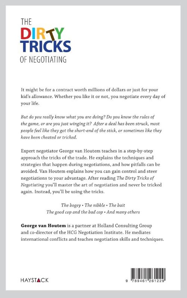 Expert negotiator George van Houtem teaches in a step-by-step approach the tricks of the trade. He explains the techniques and strategies that happen during negotiations, and how pitfalls can be avoided. Van Houtem explains how you can gain control and steer negotiations to your advantage.
