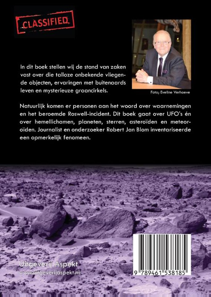 Natuurlijk komen er personen aan het woord over waarnemingen en het beroemde Roswell-incident. Dit boek gaat over UFO's én over hemellichamen, planeten, sterren, asteroïden en meteoroïden. Journalist en onderzoeker Robert Jan Blom inventariseerde een opmerkelijk fenomeen.