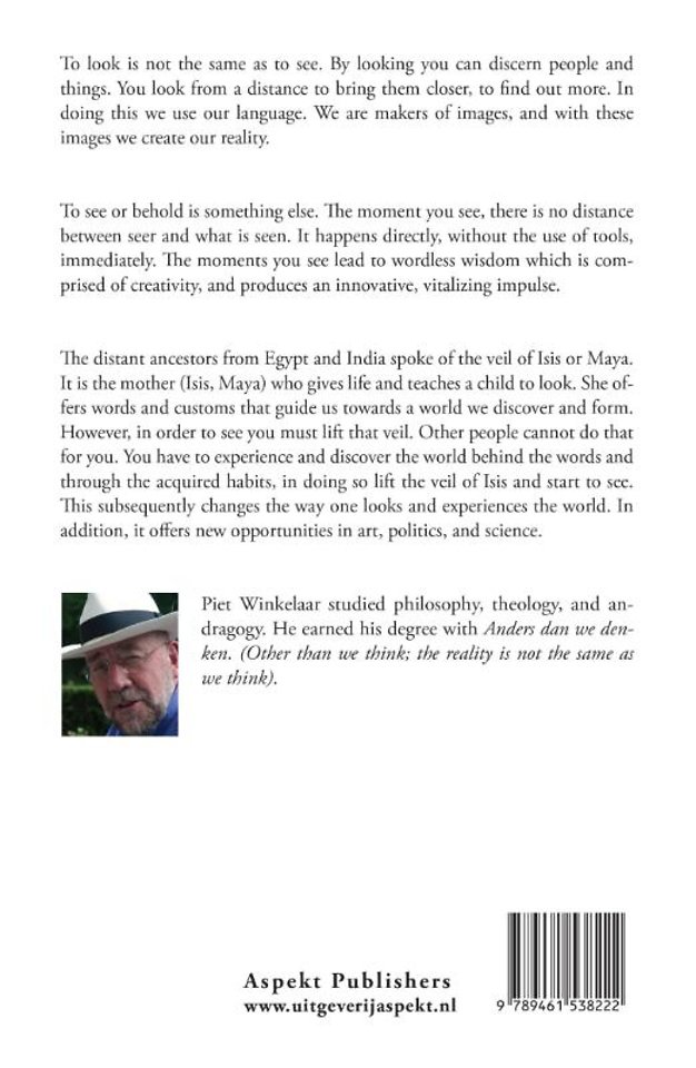 The distant ancestors from Egypt and India spoke of the veil of Isis or Maya. It is the mother (Isis, Maya) who gives life and teaches a child to look. She offers words and customs that guide us towards a world we discover and form. However, in order to see you must lift that veil. Other people cannot do that for you. You have to experience and discover the world behind the words and through the acquired habits, in doing so lift the veil of Isis and start to see. This subsequently changes the way one looks and experiences the world. In addition, it offers new opportunities in art, politics, and science.