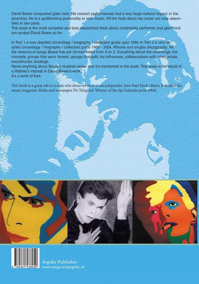 This book is the most complete and best researched book about multimedia performer and glam rock sex symbol David Bowie so far. Part 1 is a very detailed chronology / biography / collectors guide up to 1989. Part 2 is a very detailed chronology / biography / collectors guide 1989 - 2004.