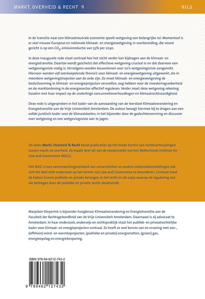 In deze inaugurele rede staat centraal hoe het recht verder kan bijdragen aan de klimaat- en energietransitie. Daartoe wordt geschetst dat effectieve wetgeving cruciaal is en dat daarvoor een wetgevingsvisie nodig is. Vervolgens worden bouwstenen voor zo’n wetgevingsvisie aangereikt. Hiervoor worden vijf overkoepelende thema’s voor klimaat- en energiewetgeving uitgewerkt, die in meerdere wetgevingstrajecten aan de orde zijn. Zo moet klimaat- en energiewetgeving de besluitvorming in klimaat- en energieprojecten versnellen, oog hebben voor de investeringszekerheid en de marktordening in de energiesector effectief reguleren. Verder moet deze wetgeving rekening houden met haar impact op de onderlinge concurrentieverhoudingen en klimaatrechtvaardigheid.