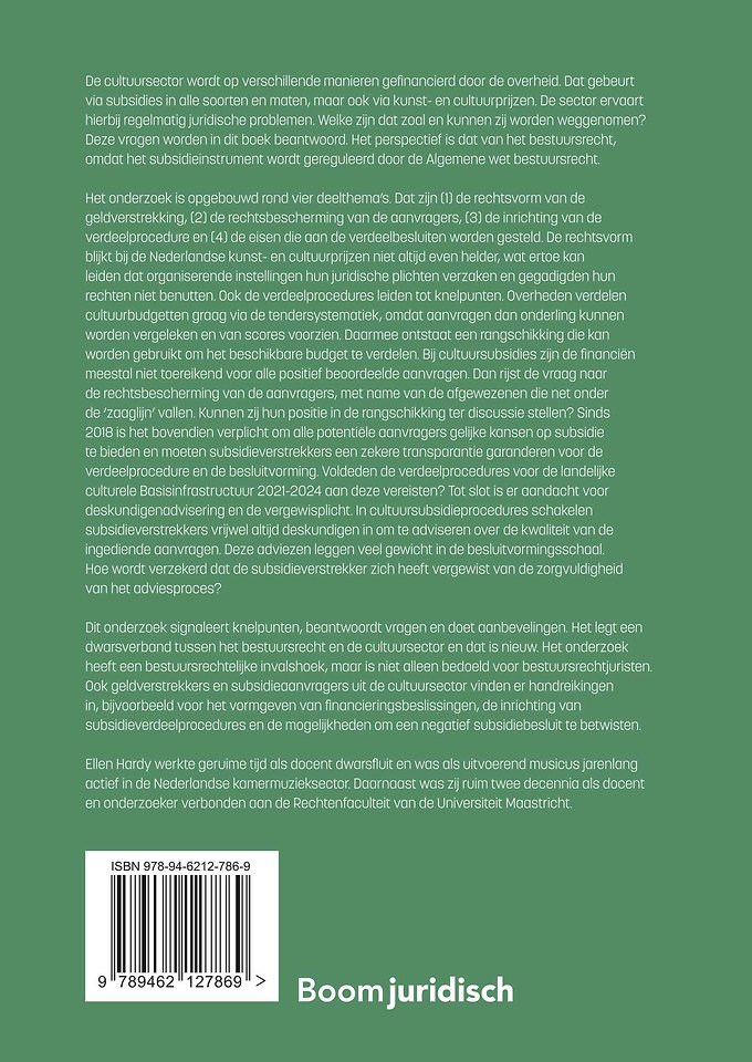 De cultuursector wordt op verschillende manieren gefinancierd door de overheid. Dat gebeurt via subsidies in alle soorten en maten, maar ook via kunst- en cultuurprijzen. De sector ervaart hierbij regelmatig juridische problemen. Welke zijn dat zoal en kunnen zij worden weggenomen? Deze vragen worden in dit boek beantwoord. Het perspectief is dat van het bestuursrecht, omdat het subsidieinstrument wordt gereguleerd door de Algemene wet bestuursrecht.