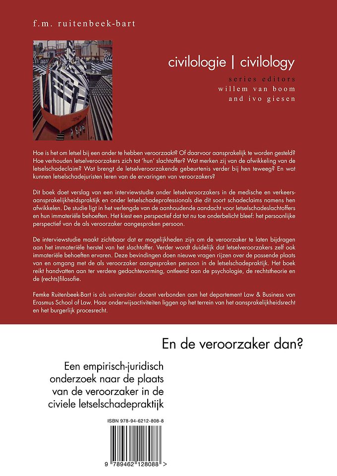 Dit boek doet verslag van een interviewstudie onder letselveroorzakers in de medische en verkeersaansprakelijkheidspraktijk en onder letselschadeprofessionals die dit soort schadeclaims namens hen afwikkelen. De studie ligt in het verlengde van de aanhoudende aandacht voor letselschadeslachtoffers en hun immateriële behoeften. Het kiest een perspectief dat tot nu toe onderbelicht bleef: het persoonlijke perspectief van de als veroorzaker aangesproken persoon.