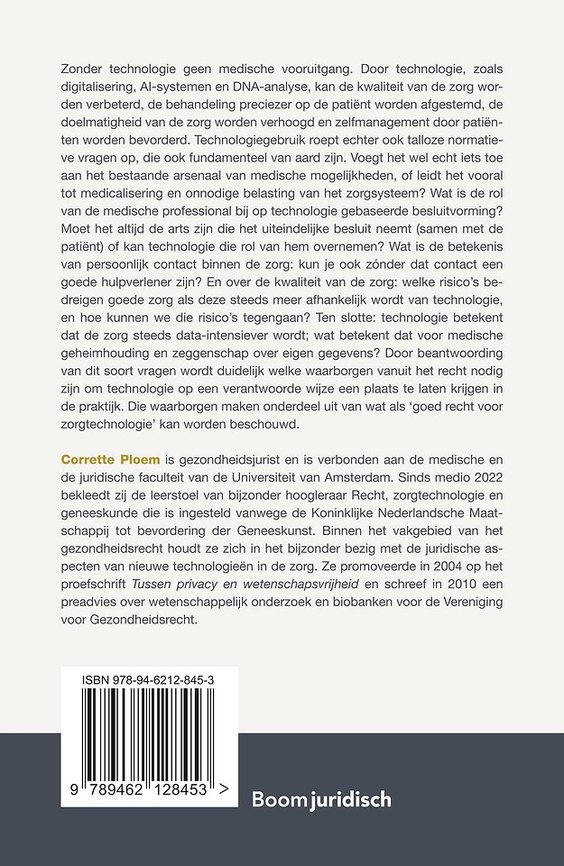Ten slotte: technologie betekent dat de zorg steeds data-intensiever wordt; wat betekent dat voor medische geheimhouding en zeggenschap over eigen gegevens? Door beantwoording van dit soort vragen wordt duidelijk welke waarborgen vanuit het recht nodig zijn om technologie op een verantwoorde wijze een plaats te laten krijgen in de praktijk. Die waarborgen maken onderdeel uit van wat als ‘goed recht voor zorgtechnologie’ kan worden beschouwd.