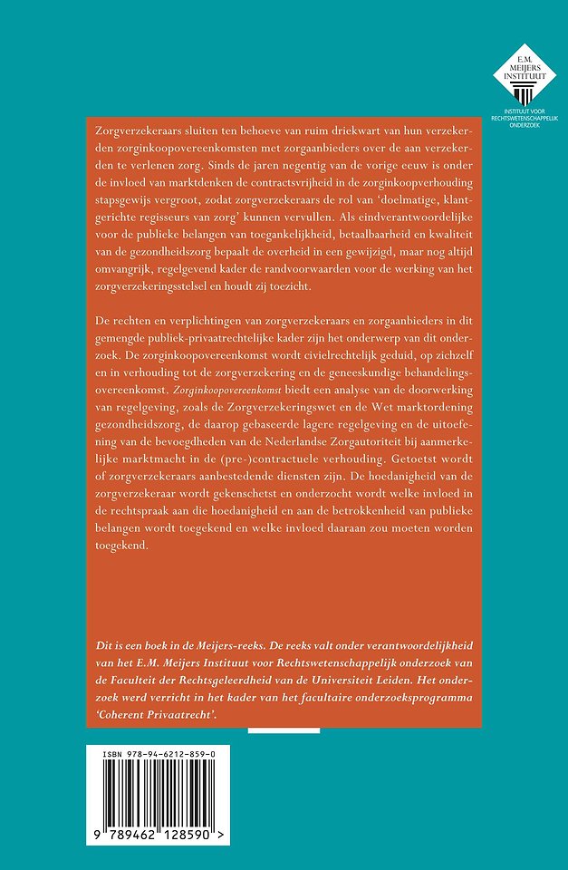 De rechten en verplichtingen van zorgverzekeraars en zorgaanbieders in dit gemengde publiek-privaatrechtelijke kader zijn het onderwerp van dit onderzoek. De zorginkoopovereenkomst wordt civielrechtelijk geduid, op zichzelf en in verhouding tot de zorgverzekering en de geneeskundige behandelingsovereenkomst. Zorginkoopovereenkomst biedt een analyse van de doorwerking van regel geving, zoals de Zorgverzekeringswet en de Wet markt ordening gezondheidszorg, de daarop gebaseerde lagere regelgeving en de uitoefening van de bevoegdheden van de Nederlandse Zorgautoriteit bij aanmerkelijke marktmacht in de (pre-)contractuele verhouding. Getoetst wordt of zorg verzekeraars aanbestedende diensten zijn. De hoedanigheid van de zorg verzekeraar wordt gekenschetst en onderzocht wordt welke invloed in de rechtspraak aan die hoedanigheid en aan de betrokkenheid van publieke belangen wordt toegekend en welke invloed daaraan zou moeten worden toegekend.
