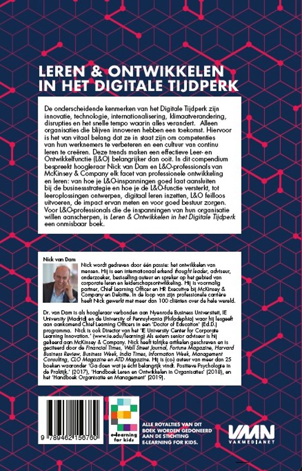 Meer over Nick van DamDe onderscheidende kenmerken van de Digitale Eeuw, zijn innovatie, technologie, globalisering en het snelle tempo waarin alles verandert. Willen organisaties concurrerend blijven, dan is het van vitaal belang dat ze in staat zijn om competenties van hun werknemers te verbeteren en een cultuur van continu leren te creëren. Deze trends maken een effectieve Leer- en Ontwikkelfunctie (L&O) belangrijker dan ooit.
