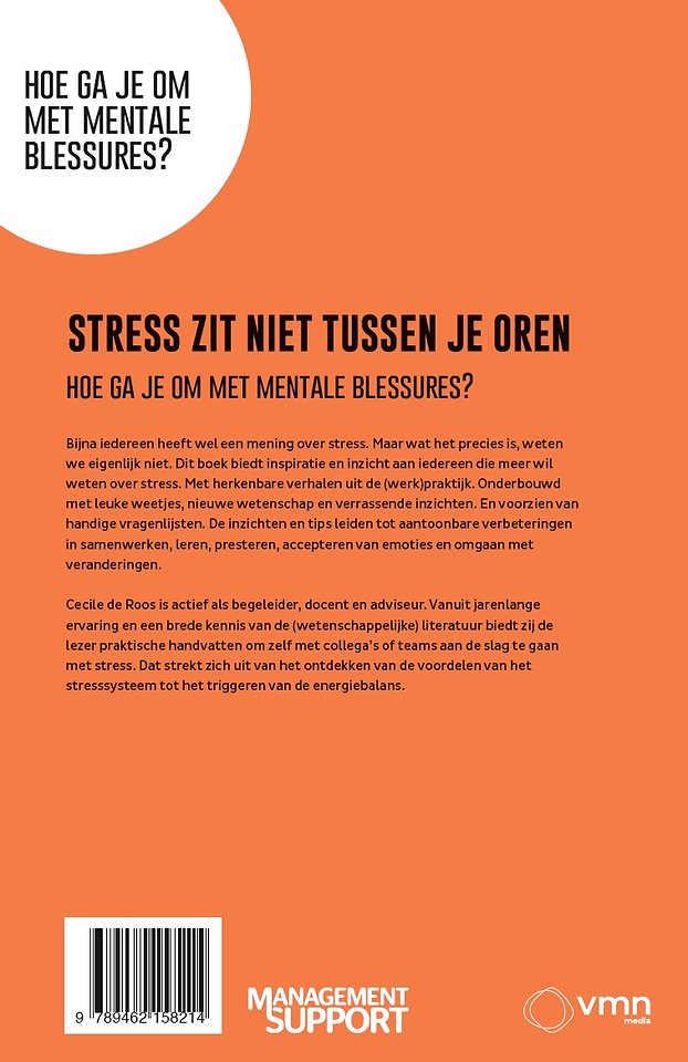 Meer over Cecile de RoosBijna iedereen heeft wel een mening over stress. Maar wat het precies is, weten we eigenlijk niet. Dit boek biedt inspiratie en inzicht aan iedereen die meer wil weten over stress. Met herkenbare verhalen uit de (werk)praktijk. Onderbouwd met leuke weetjes, nieuwe wetenschap en verrassende inzichten. En voorzien van handige vragenlijsten.