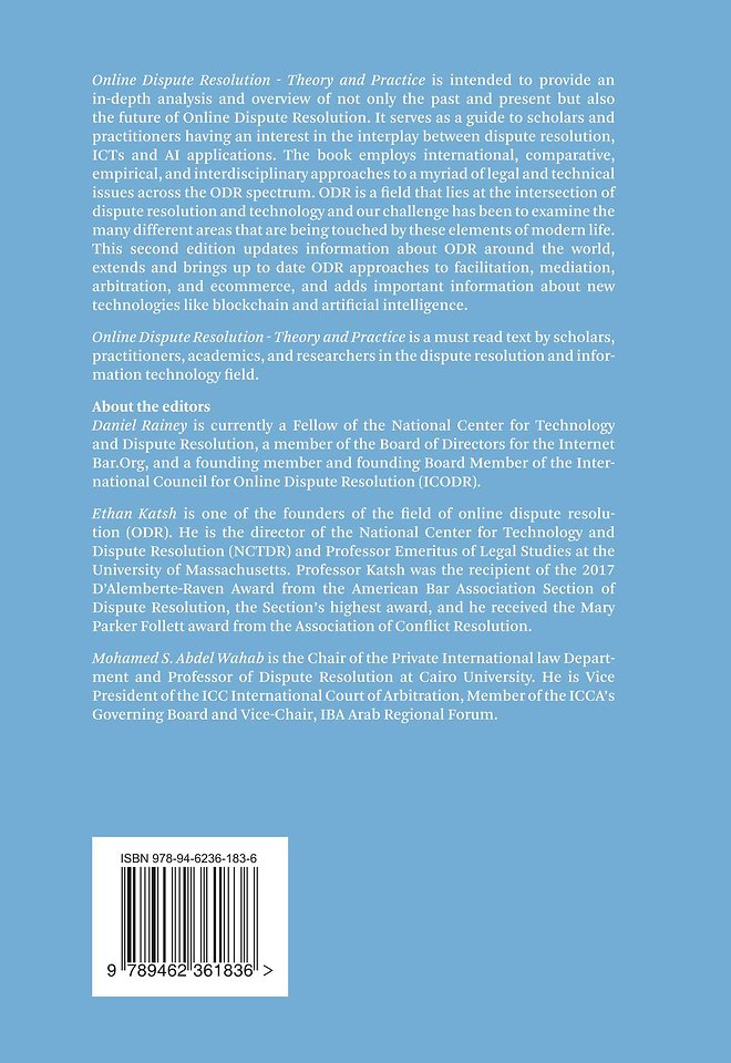 This second edition updates information about ODR around the world, extends and brings up to date ODR approaches to facilitation, mediation, arbitration, and ecommerce, and adds important information about new technologies like blockchain and artificial intelligence.