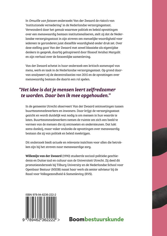 verzorgingsstaat menselijke waardigheid decentralisatie institutionele vernedering fatsoen beleid buurtteams zelfredzaamheid etnografie filosofie sociaal beleid mens, werk en taak sociaal domein bureaucratie discretionaire ruimte mensbeeld maatschappij normativiteit overheid participatie gezondheidszorg etnografisch onderzoek discoursanalyse maatwerk frontlijnwerkers beleidskritiek hulpverlening participatiesamenleving zorg samenwerken