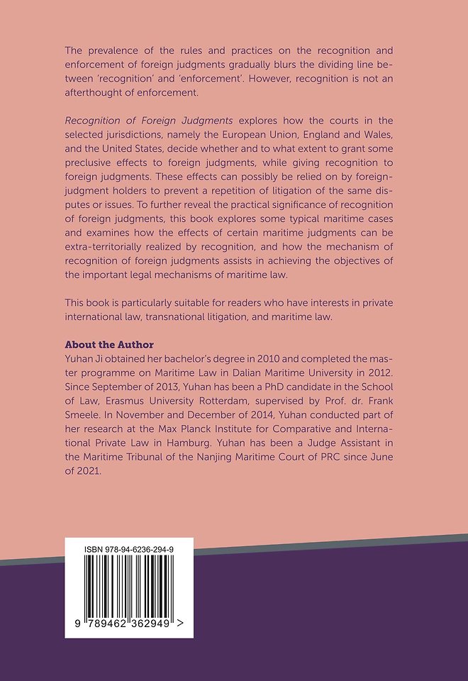 However, recognition is not an afterthought of enforcement. Recognition of Foreign Judgments explores how the courts in the selected jurisdictions, namely the European Union, England and Wales, and the United States, decide whether and to what extent to grant some preclusive effects to foreign judgments, while giving recognition to foreign judgments. These effects can possibly be relied on by foreign judgment holders to prevent a repetition of litigation of the same disputes or issues. To further reveal the practical significance of recognition of foreign judgments, this book explores some typical maritime cases and examines how the effects of certain maritime judgments can be extra-territorially realized by recognition, and how the mechanism of recognition of foreign judgments assists in achieving the objectives of the important legal mechanisms of maritime law.