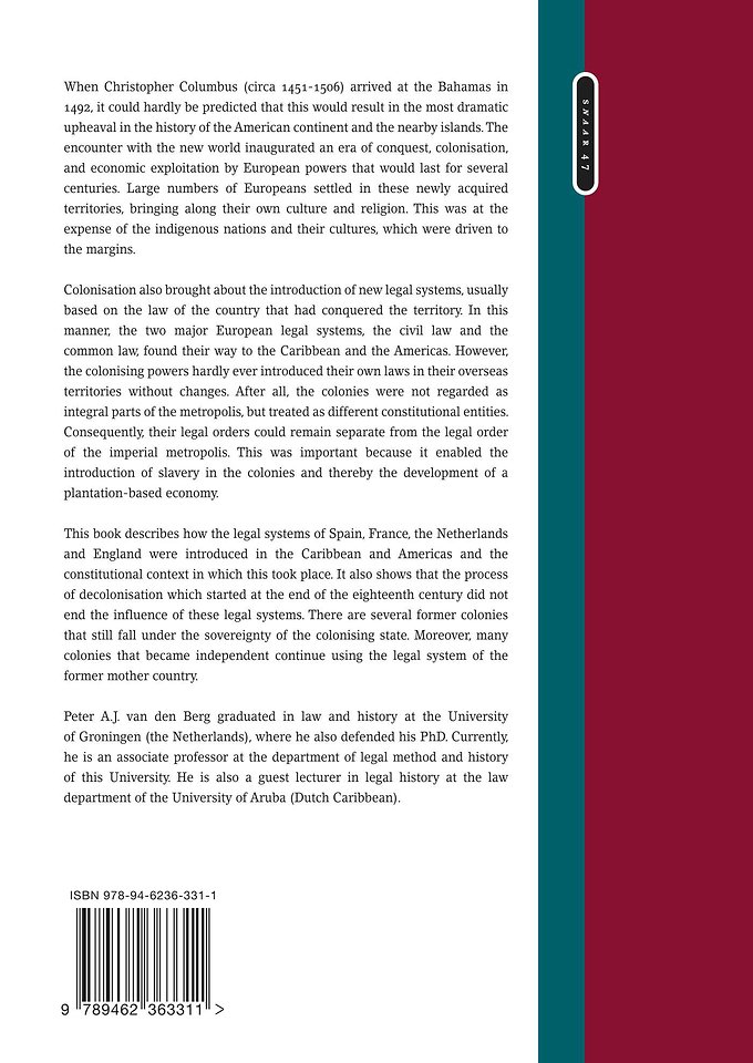This book describes how the legal systems of Spain, France, the Netherlands and England were introduced in the Caribbean and Americas and the constitutional context in which this took place. It also shows that the process of decolonisation which started at the end of the eighteenth century did not end the influence of these legal systems. There are several former colonies that still fall under the sovereignty of the colonising state. Moreover, many colonies that became independent continue using the legal system of the former mother country.