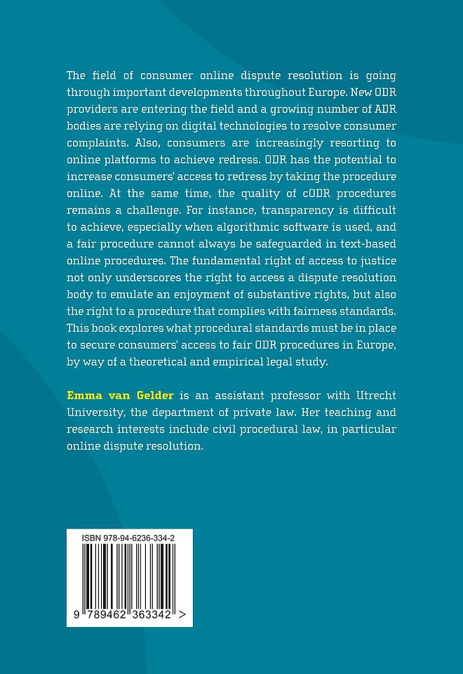 Emma van Gelder is an assistant professor at Utrecht University, Molengraaff Instituut. She worte a PhD at the Erasmus University Rotterdam, conducting research on online dispute resolution for consumers as a means of enhancing consumers’ access to justice in the EU. She received a master’s degree in Legal Research (cum laude, 2017) at the Utrecht University.