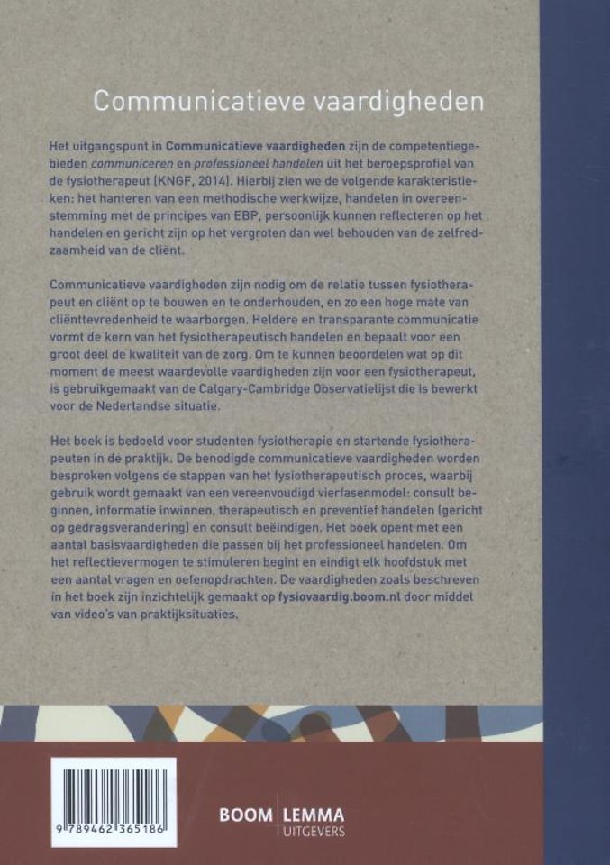 Communicatieve vaardigheden zijn nodig om de relatie tussen fysiotherapeut en cliënt op te bouwen en te onderhouden, en zo een hoge mate van cliënttevredenheid te waarborgen. Heldere en transparante communicatie vormt de kern van het fysiotherapeutisch handelen en bepaalt voor een groot deel de kwaliteit van de zorg. Om te kunnen beoordelen wat op dit moment de meest waardevolle vaardigheden zijn voor een fysiotherapeut, is gebruikgemaakt van de Calgary-Cambridge Observatielijst die is bewerkt voor de Nederlandse situatie.