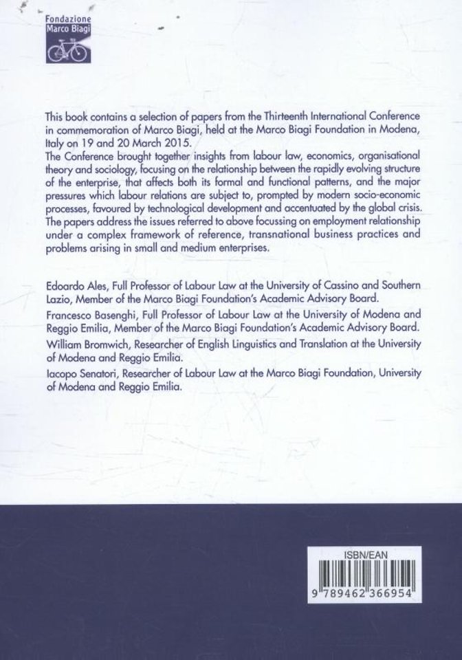 This book contains a selection of papers from the Thirteenth International Conference in commemoration of Marco Biagi, held at the Marco Biagi Foundation in Modena, Italy on 19 and 20 March 2015. The Conference brought together insights from labour law, economics, organisational theory and sociology, focusing on the relationship between the rapidly evolving structure of the enterprise, that affects both its formal and functional patterns, and the major pressures which labour relations are subject to, prompted by modern socio-economic processes, favoured by technological development and accentuated by the global crisis. The papers selected for this volume address the issues broadly referred to above along three strands of analysis.