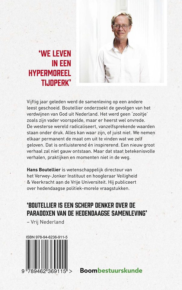 Hans Boutellier (1953) is analyticus van de sociale ontwikkelingen sinds de jaren zestig. Hij schreef over secularisering, criminaliteit en veiligheid, de netwerksamenleving, identiteitspolitiek en polarisatie.
