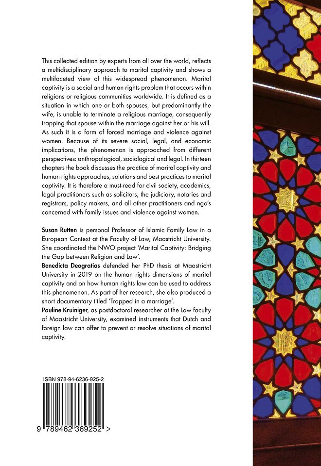 In thirteen chapters the book discusses the practice of marital captivity and human rights approaches, solutions and best practices to marital captivity. It is therefore a must-read for civil society, academics, legal practitioners such as solicitors, the judiciary, notaries and registrars, policy makers, and all other practitioners and NGO's concerned with family issues and violence against women.